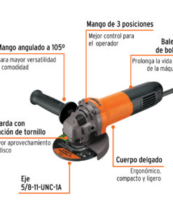 La esmeriladora angular 4-1/2″ TRUPER PRO de 800W es una herramienta compacta y potente, ideal para trabajos de corte, desbaste y pulido en metal y otros materiales. Su motor de 800 watts ofrece un rendimiento confiable para proyectos de mantenimiento, herrería y construcción ligera, garantizando productividad y seguridad.