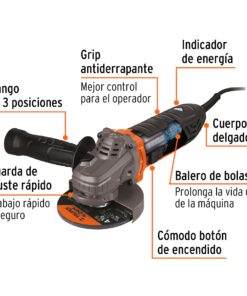La esmeriladora angular 4-1/2″ TRUPER ERGO PRO de 850W está diseñada para quienes buscan comodidad, ligereza y precisión en cada trabajo. Su motor de 850 watts garantiza un rendimiento constante en labores de corte, desbaste y pulido en metal y otros materiales, mientras que la línea ERGO PRO ofrece un diseño ergonómico que reduce la fatiga del operador.